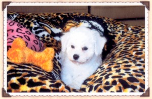 This is a baby bichon frise. This puppy already has a loving home. He lives in the LeMars/Remsen, Iowa area. This one's brother is the photo above. |